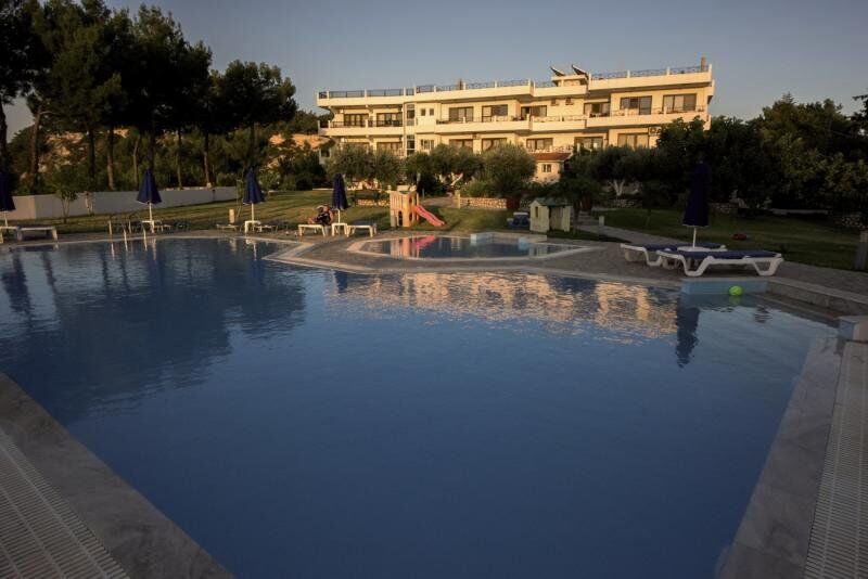 Dit complex ligt in een schitterende natuurlijke omgeving, met uitzicht op het eiland Rhodos. Het dichtstbijzijnde busstation ligt op 50 meter afstand en vanaf hier kunnen de gasten de beroemde middeleeuwse stad Rhodos bereiken. Het Ialyssos-strand ligt op ongeveer 3 km afstand van het complex en het is ongeveer 5 km naar het toeristische centrum van Faliraki en 6 km naar de oude binnenstad van Rhodos. De luchthaven Rhodos ligt op slechts 8 km afstand.