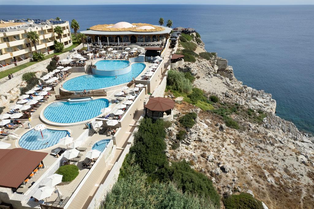 Extra info: Drie ruime zwembaden, Plof direct op een ligbed, Verser eten op je bord kan niet, Kom tot rust in het bubbelbad, Panorama view over zee, Bij de mooie baai van Kalithea & inclusief transfers.