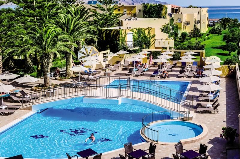 Het strandhotel ligt in Georgioupoli dicht bij het dorp en het meer van Kournas. Het hotelcomplex ligt aan het lange zandstrand van Georgioupoli, waardoor het de ideale plek voor een vakantie is. Georgioupoli ligt tussen Chania, de belangrijkste stad in de westelijke regio, en Rethymno, de derde grootste stad van Kreta. Het is ook slechts op korte afstand van het platteland, waardoor het een ideale plek voor sightseeing en excursies naar de verschillende attracties van het eiland is. De afstand naar de stad Rethymno is slechts 18 km. De internationale luchthaven Chania ligt op een afstand van ongeveer 45 km en de internationale luchthaven Heraklion en de stad Heraklion liggen op ongeveer 100 km.