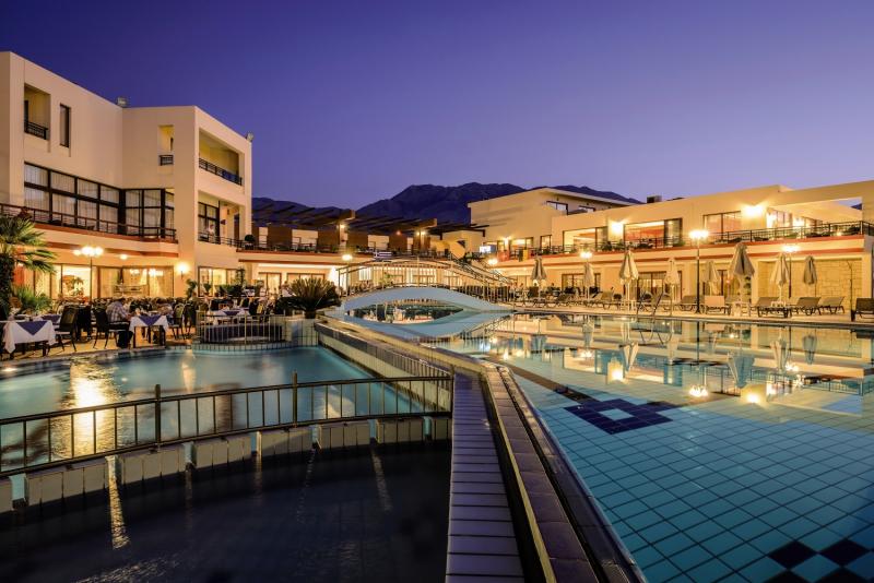 Ontsnap naar Vantaris Palace, een prachtig hotel dat trots is op zijn directe toegang tot het zandstrand en de weelderige, uitnodigende zwembaden. Met zijn idyllische ligging aan de rand van Kreta, biedt dit resort een perfecte mix van ontspanning en avontuur. Hier vind je de ultieme balans tussen luieren aan het strand en verkoeling zoeken in het kristalheldere zwembadwater.